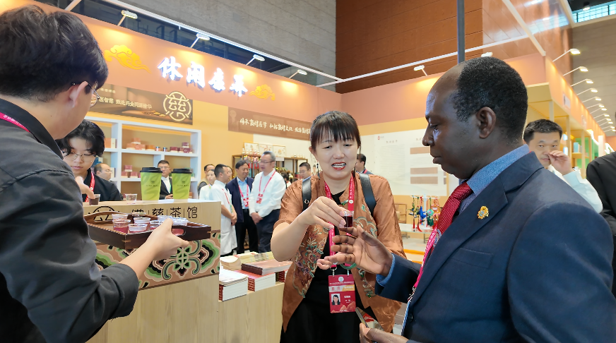这两款茶饮以甘肃道地黄芪、百合等药食同源原料为核心,将中医养生智慧巧妙融入现代饮品美学。它们不仅功效明确,更在口感上做了优化,成功吸引了众多参会者驻足品尝。更令人欣喜的是,不少外宾虽不懂中文,却在翻译的帮助下,饶有兴致地指着每一味药材,仔细询问其功效,上演了一场生动而深入的中医药文化国际对话。