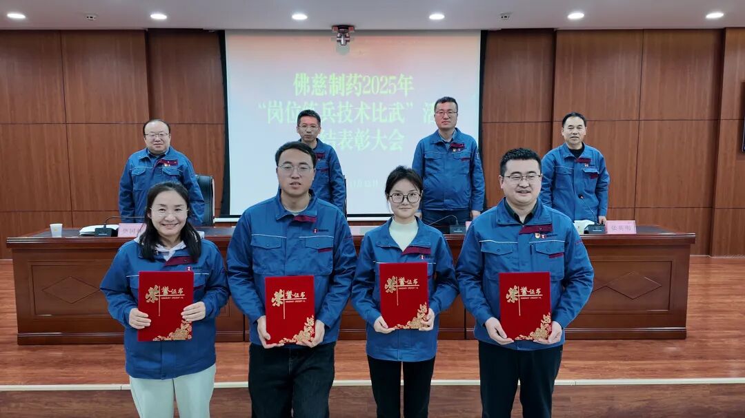 11月12日,佛慈制药召开总结表彰大会,对此次“岗位练兵技术比武”活动中涌献出的先进个人、先进集体进行了表彰奖励。下一步,佛慈制药将不断完善竞赛体系与激励机制,推动岗位练兵常态化、技能提升长效化,为企业高质量发展培养更多高素质技能人才,为传承发扬中医药文化、助力健康中国贡献佛慈力量。
