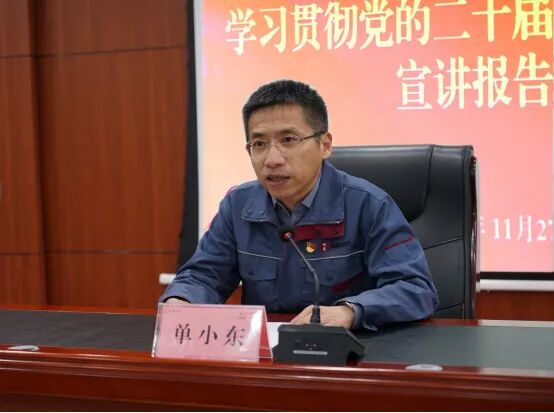 11月27日,甘肃国投集团党委委员、副总经理,佛慈集团、佛慈制药党委书记、董事长单小东向佛慈集团党员干部职工作专题宣讲。他紧扣“五个讲清楚”要求,从深刻领会全会的重大意义和核心要义、全面把握全会部署的战略任务与推动佛慈集团高质量发展的结合点、狠抓贯彻落实确保全会精神落地生根等方面,结合集团工作实际进行了系统解读。单小东要求,集团上下要认真落实成广平同志提出的要求,从党建引领、产业升级、科技创新、市场运营、安全保障等方方面面找准切入点和着力点,全力以赴冲刺年度目标,系统谋划“十五五”规划,把全会精神转化为破解发展难题、推动提质增效的具体行动。
