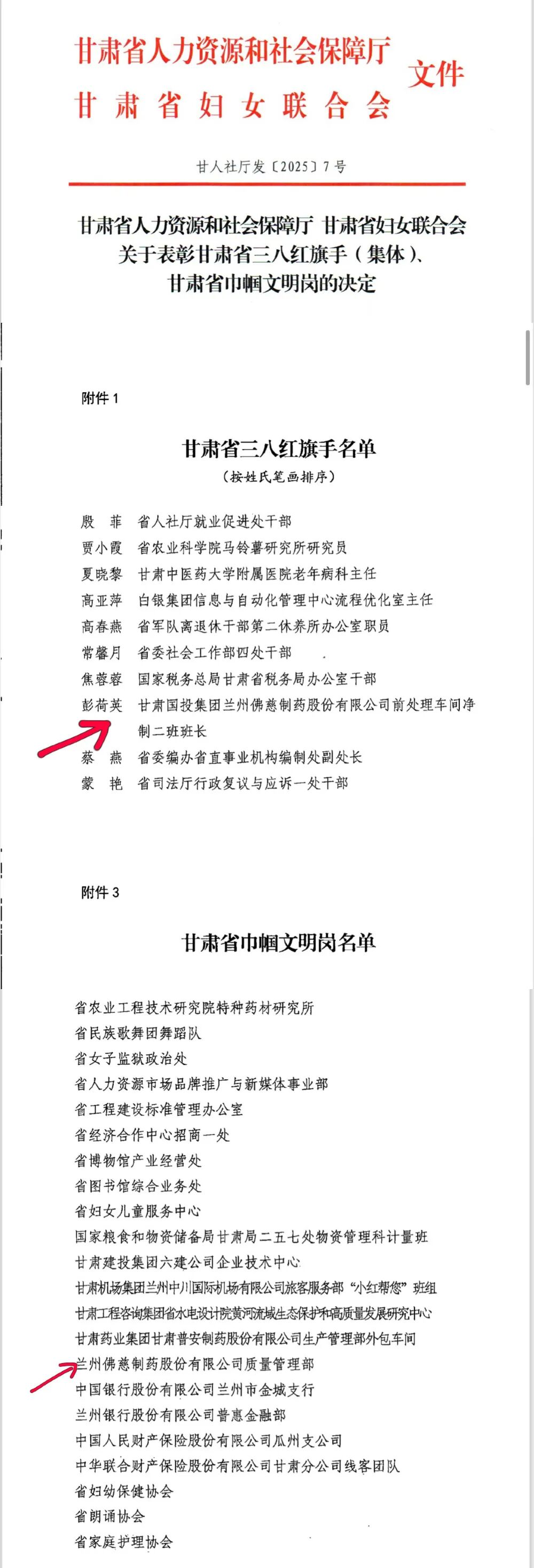 ·巾帼荣光:员工彭荷英获评“甘肃省三八红旗手”,公司质量管理部获评“甘肃省巾帼文明岗”,彰显企业人文温度与岗位标杆力量。