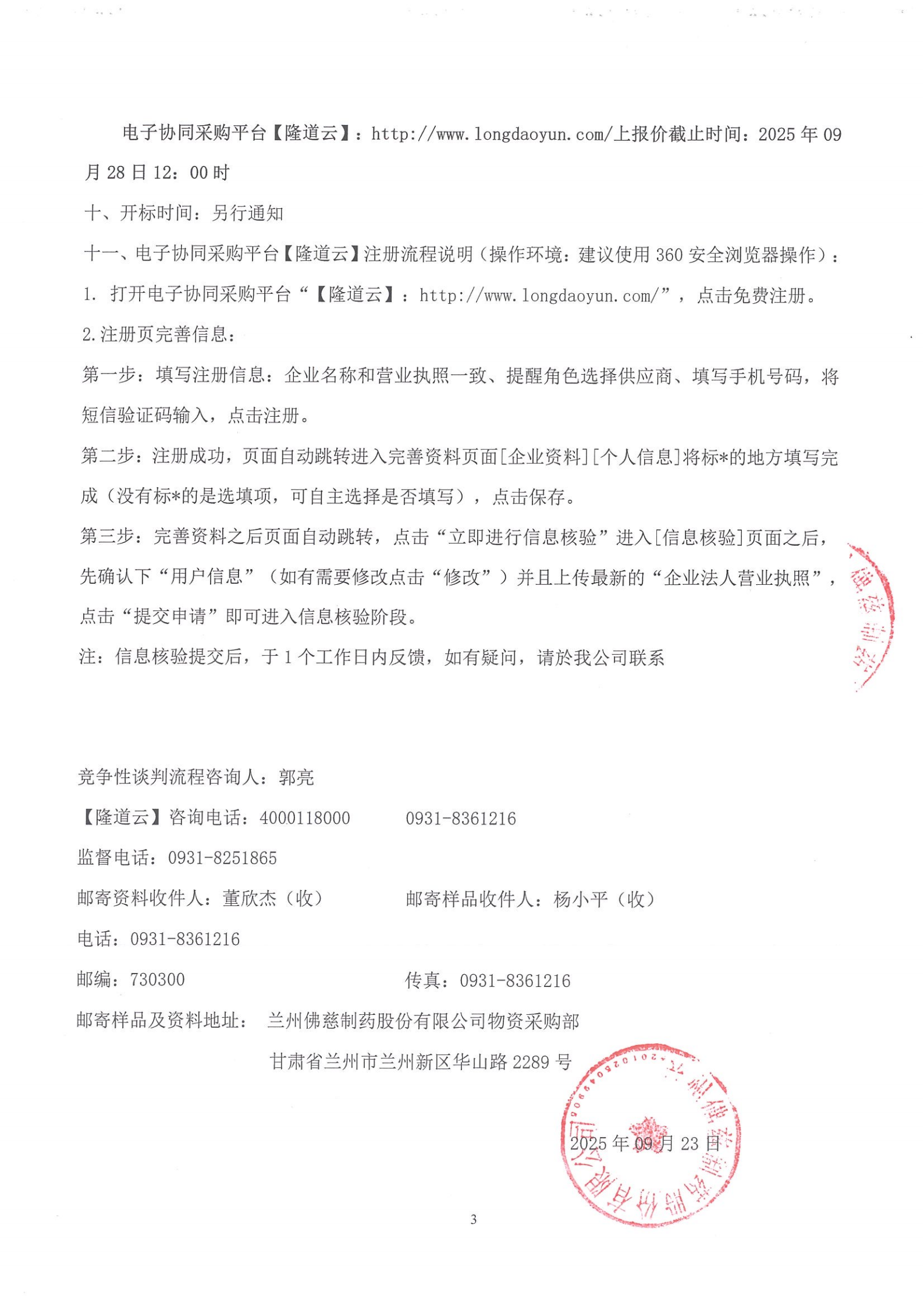 兰州佛慈制药股份有限公司中药材竞争性谈判采购公告