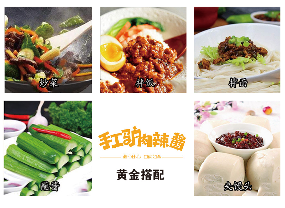 佛慈驴肉辣酱,精选佛慈优质驴肉、西北特级花海辣椒等上等食材,采用传统工艺配方、纯手工精制而成!驴肉的不饱和脂肪酸含量,尤其是生物价值特高的亚油酸、亚麻酸的含量都远远高于猪肉、牛肉 。 “天上龙肉,地上驴肉”,是人们对驴肉的最高褒扬 , 佛慈手工驴肉辣酱,营养丰富,香辣浓郁,开罐即食,安全健康,用于拌面,沾饺子,佐食馒头等,风味更佳。