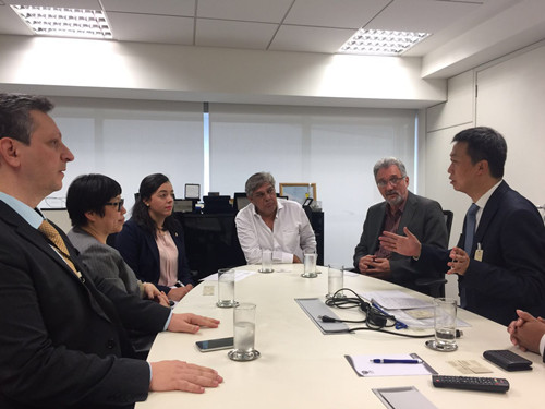 11月21日,孙裕总经理一行来到巴西卫生部,拜访了制定中成药法规的卫生部综合、互补和实践治疗国家协调专员Daniel先生。孙裕总经理详细介绍了中医药在中国数千年来的临床实践以及对中华民族健康事业做出的贡献。随后,双方就中成药在巴西的立法展开了热烈的讨论,中方建议巴西卫生部承认《中国药典》并以《中国药典》的相关标准为依据起草巴西中成药注册指南。Daniel先生明确表示,此次会谈对他的启发很大,他会慎重考虑中方建议,并敦促其他相关部门加速中成药在巴西的立法进程,尽快让博大精深的中国中医药惠及巴西人民。Daniel先生代表巴西政府邀请中国政府参加即将于2018年3月在巴西举办的世界慢性病研讨会,希望由佛慈制药邀请中国政府官员参会,并邀请中国知名中医师进行现场义诊。
