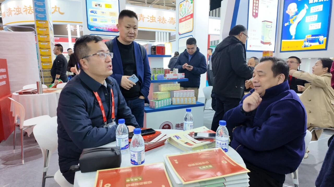 展会现场,佛慈制药独家生产品种调胃丹、定眩丸、竹叶椒片、参茸固本还少丸、复方黄芪健脾口服液,浓缩丸系列产品,安宫牛黄丸,阿胶等产品重磅亮相。