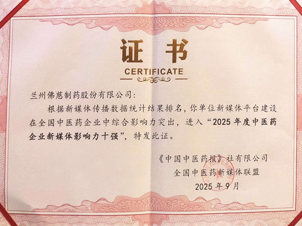 ·新媒体影响力:荣登 “2025年度中医药企业新媒体影响力十强”。