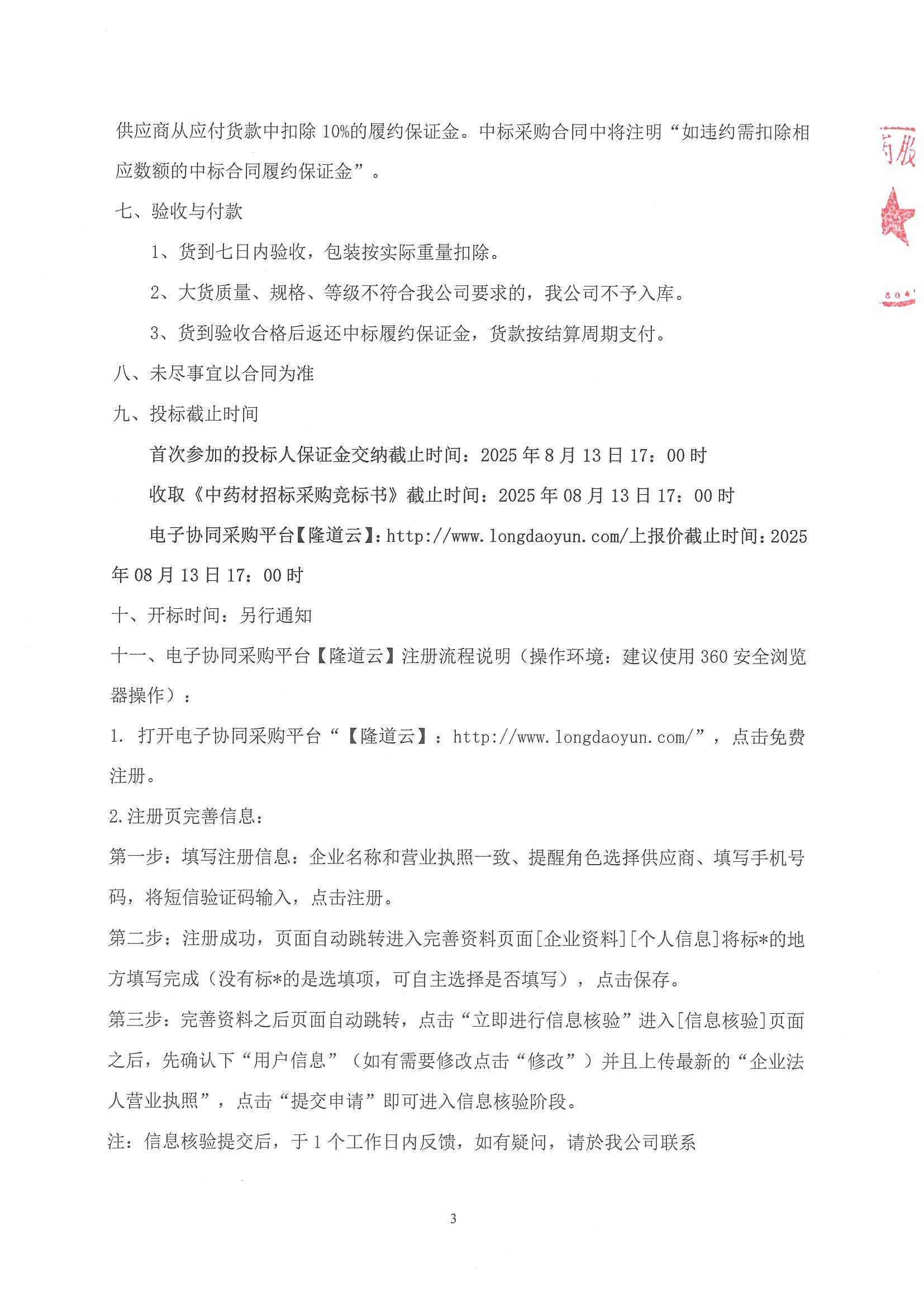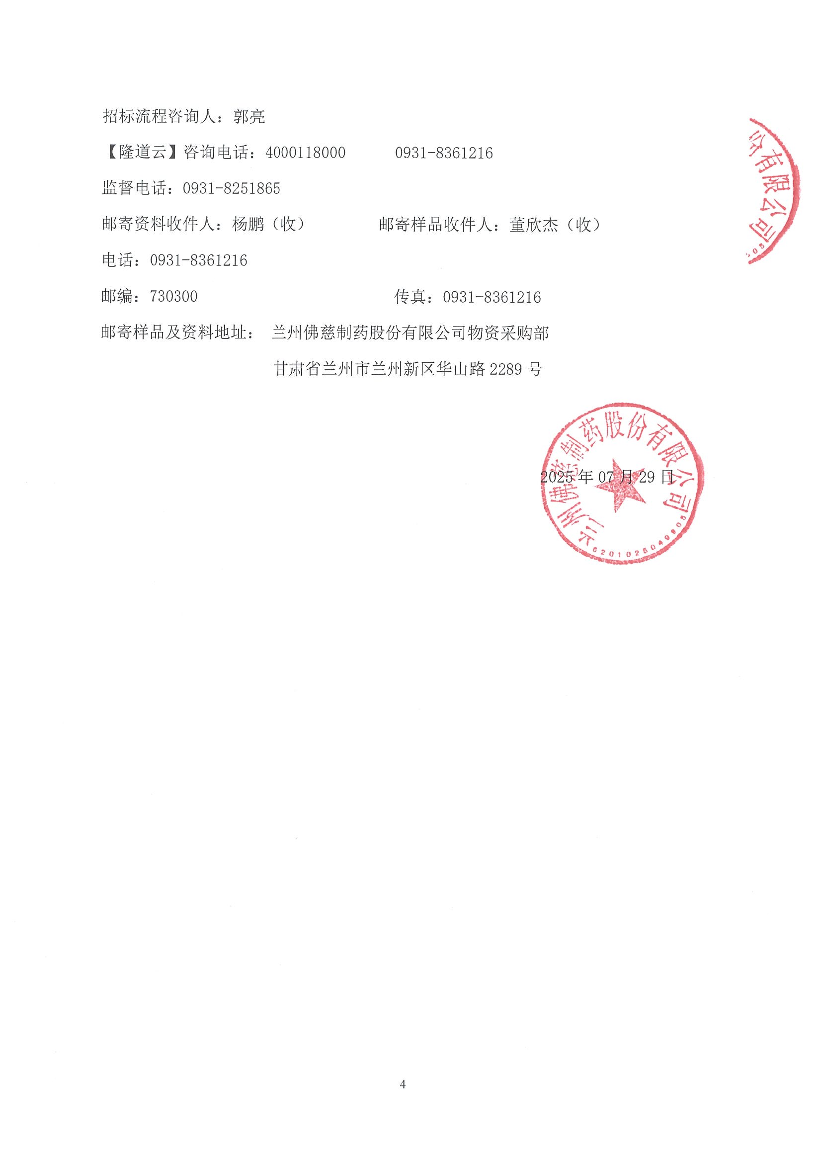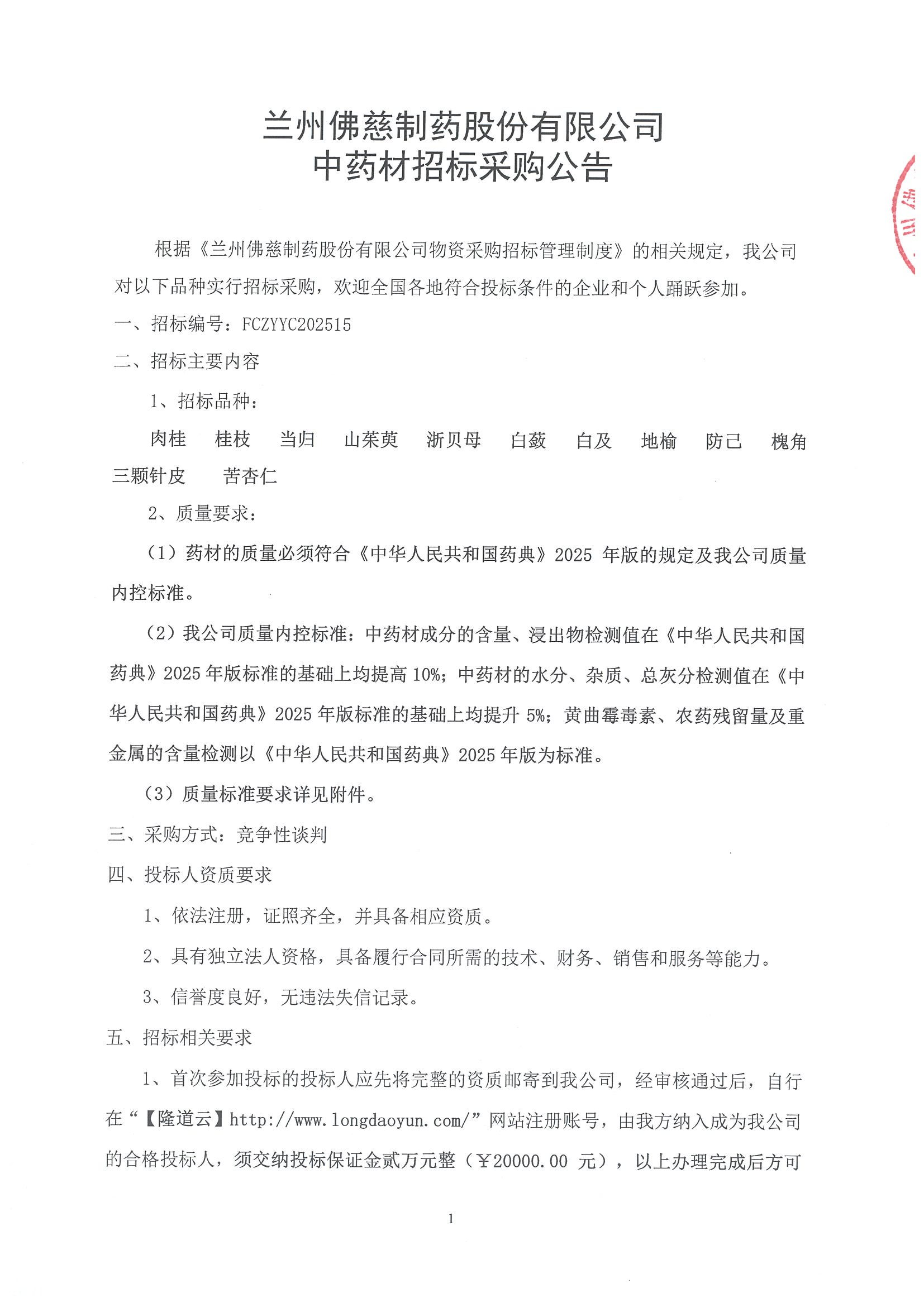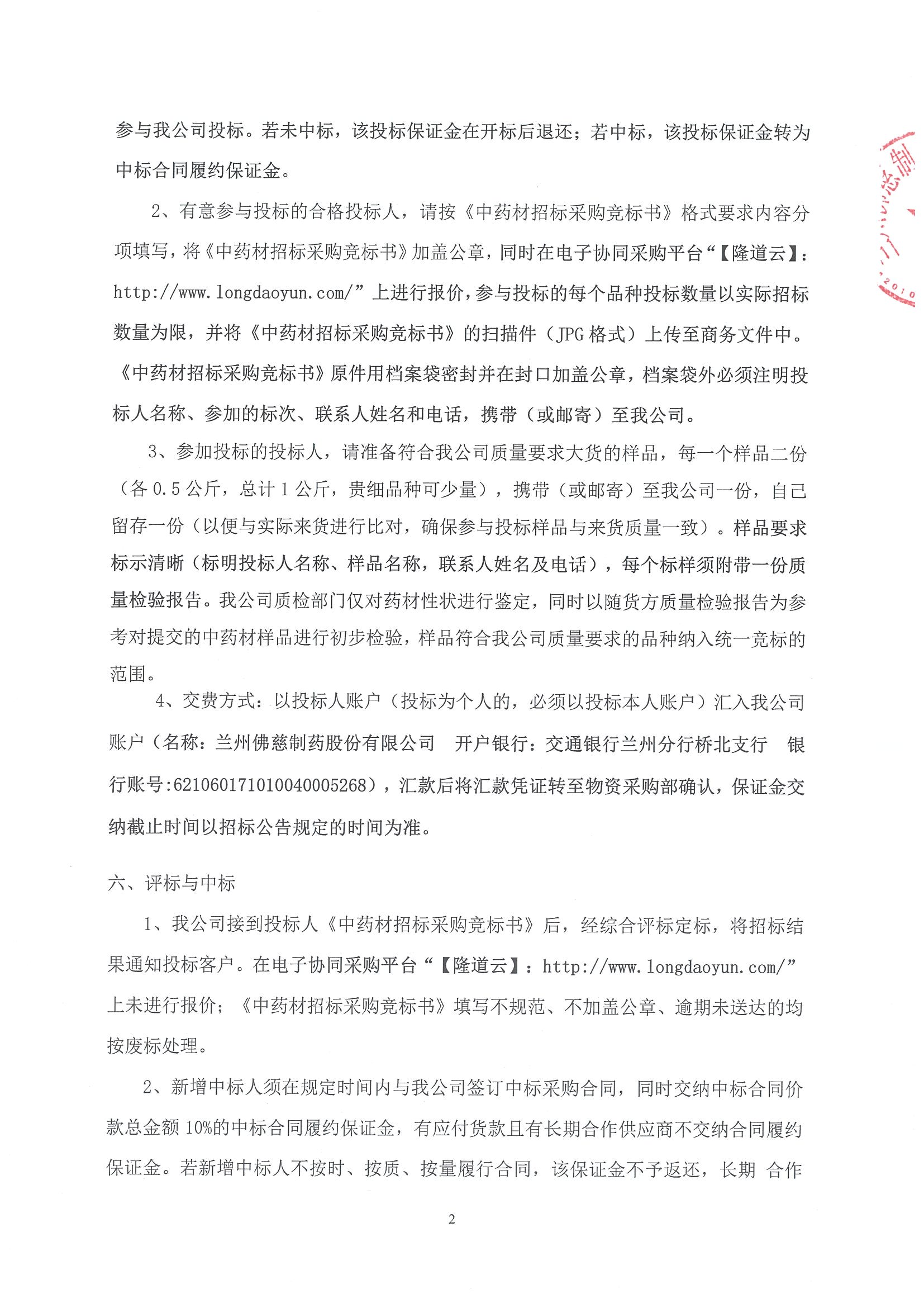 兰州佛慈制药股份有限公司中药材招标采购公告